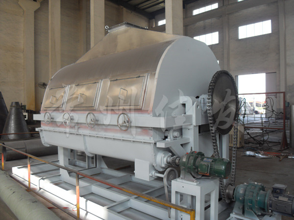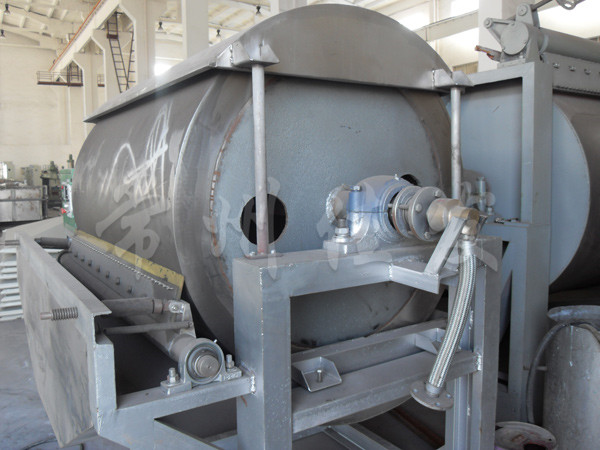 TG系列滾筒干燥機的工作原理是讓液體或泥漿狀的物料在水蒸汽其它載體加熱的滾筒表面形成薄膜,并在滾筒轉(zhuǎn)一圈的過程中便被干燥完畢,利用刮刀把產(chǎn)品刮下來,露出滾筒表面再次與原料接觸形成薄膜進行干燥。